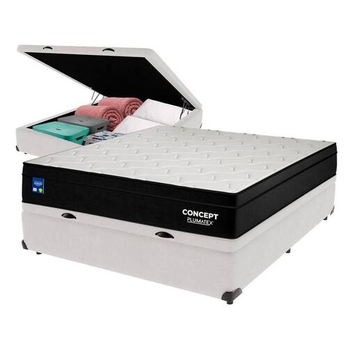 Cama Box Baú Branco E Colchão Casal Concept Molas Ensacadas Plumatex