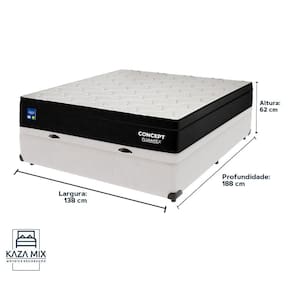 A lateral em Kupon e o pillow INN complementam o design, conferindo um visual moderno e elegante. Com 25 cm de altura, suporte para até 110 kg e detalhes de construção que incluem EPS para estabilidade e TNT 100g para maior aderência, o Concept é a escolha ideal para quem valoriza um descanso confortável e refinado.