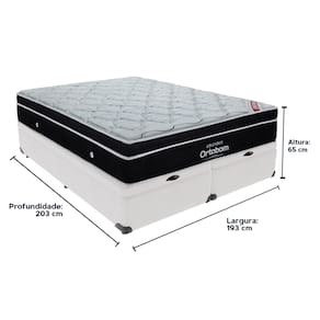 O conforto que sua casa precisa e a qualidade que você merece está na Kazamix!Desfrute do máximo conforto com o Colchão Elegant Ortobom! Sua estrutura de molas ensacadas, combinada com espuma D26 de alta densidade, proporciona o suporte perfeito para uma noite de sono revigorante. O Pillow Euro oferece um toque adicional de suavidade, garantindo um descanso ainda mais relaxante.Com o sistema No Turn, a manutenção se torna super simples, pois não é necessário virar o colchão. A fibra de bambu, que possui um toque macio e aconchegante, também contribui para um ambiente mais sustentável e confortável.Experimente o Colchão Elegant Ortobom e descubra o conforto, a qualidade e a inovação que você merece. Invista em noites de sono incríveis!Modelo: ElegantMarca: OrtobomTamanho: KingDimensões: 193x203X28 (Largura x Comprimento x Altura)Conforto: FirmeSistema: Molas EnsacadasPillow: Euro PillowPeso Máximo recomendado: 150 kg (Por pessoa)Proteções: Antiácaro, antialérgico, antifungo, antimofoGarantia: 1 ano pelo FabricanteO conforto que sua casa precisa e a qualidade que você merece está na KazamixAproveite cada metro quadrado do seu dormitório com a Cama Box Baú!Projetada com madeira de reflorestamento reforçada, a Cama Box Baú é a escolha ideal para quem busca otimização de espaço e praticidade na organização do dia a dia.Com um baú generoso, ela oferece a solução perfeita para armazenar travesseiros extras, cobertores, malas e muito mais. Além disso, sua estrutura robusta suporta até 150 kg por pessoa, garantindo a sustentação ideal para o seu colchão e prolongando sua vida útil.O pistão a gás robusto proporciona uma abertura suave e segura do baú, oferecendo praticidade e resistência no uso diário. Para completar, o acabamento de alta qualidade combina perfeitamente com qualquer estilo de decoração, agregando elegância e versatilidade ao seu ambiente.Não perca tempo! Adquira agora mesmo sua Cama Box Baú e diga adeus à falta de espaço e desorganização.Marca: KazaMixModelo: BaúCor do Box: BrancoTamanho: KingDimensões: 193X203X37 (Largura x Comprimento x Altura) Estrutura: MadeiraPeso máximo recomendado: 150 kg (Por Pessoa)Altura do Box: 32 cm Altura dos Pés: 5 cm Altura total: 37 cm Garantia: 03 mesesSelo Ecologicamente CorretoAtenção: Antes de finalizar sua compra, certifique-se de que as dimensões do produto sejam adequadas para serem transportadas pelos elevadores, portas, escadas e corredores de sua residência. Ressaltamos que não nos responsabilizamos pelo transporte do produto por meios específicos, como escadas, guinchos ou içamentos.