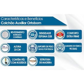 Cama Auxiliar D28 Solteiro Bordado White (79x171x11) - Ortobom