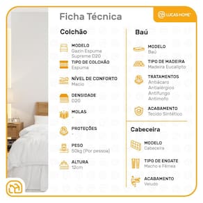 A base baú é confeccionada com madeira de reflorestamento com tratamentos anticupim e antimofo, o seu diferencial é seu compartimento interno garantindo um novo espaço em seu quarto, agregando um valor e sofisticação ao ambiente.