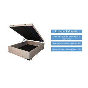 Cama Box Baú Casal 138 Bello Box - Suede bege - Preto