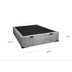 O Box Baú Cinza com Pistão tem um sistema de fácil abertura por pistões a Gás (amortecedores). Proporciona para o seu quarto melhor aproveitamento de espaço, pois seu amplo baú interno é ideal para guardar objetos, roupas de cama, travesseiros , edredons , etc....- Base com estrutura produzida em madeira de reflorestamento tratada.- Estrutura: Em madeira- Revestimento: Tecido- Tratamento: Antialérgico e Antiácaro- Pistão a Gás: (Maior durabilidade e maior facilidade no manuseio)- Contém 02 puxadores, para maior facilidade na abertura.- Contém 01 Arco na parte de trás para o colchão não escorregar. Especificações Técnicas da Cama Baú:- Material: Madeira tratada;- Proteções: Antiácaro, Antialérgico, Antifungo, Antimofo;- Peso máximo recomendado: até 100kg (por pessoa);- Altura do baú: 40cm (35cm com 6cm dos pés);- Revestimento: Suede;- Cor: Cinza.- Quantidade de Pés: 6 pés;- Material dos pés: Plástico;- Garantia: 3 meses;- Tamanho: Casal;- Dimensões do produto (altura x largura x comprimento): 40x138x188cm *ATENÇÃO: -Verifique se as dimensões dos produtos passam por elevadores, portas, escadas e corredores. -Não nos responsabilizamos pelo transporte dos produtos por escadas, guinchos, içamentos ou quaisquer outros meios específicos de transporte.-As imagens ambientadas são meramente ilustrativas e podem apresentar itens que não compõe o produto.- As cores do produto podem variar de acordo com o monitor, a iluminação do ambiente ou sua percepção visual.