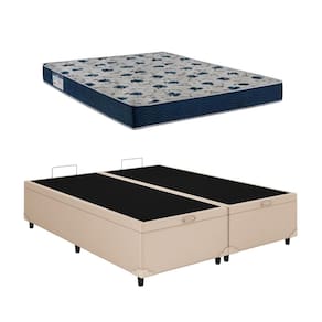 Cama Box Baú Casal Bipartido Corino Bege + Colcão Iso 60 D28 138x188x18 - Ortobom