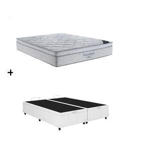 Cama Box Baú Casal Bipartido Corino Branco + Colchão Freedon Molas Ensacadas D33 138x188x32 - Ortobom