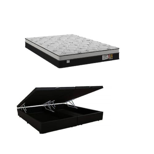 Cama Box Baú Casal Corino Preto + Colchão Concept Dream Molas Ensacadas 138x188x22 - Plumatex