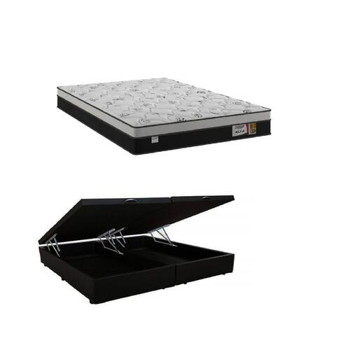 Cama Box Baú Casal Bipartido Preto Colchão Alfa Molas Ensacadas 138x188 - Plumatex