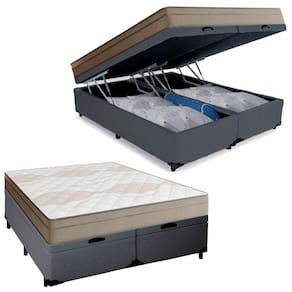 Cama Box Baú Casal Bipartido Sintético + Colchão de Molas Ensacadas Portobel Ipanema - 138x188x66cm