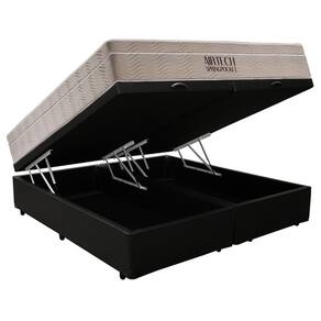 Cama Box Baú Casal Sintético Bipartido Preto + Colchão Ortobom Airtech Molas Ensacadas 65x138x188