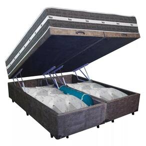 Cama Box Baú Casal Bipartido Suede + Colchão Black Graphite Molas Ensacadas 138x188x64cm