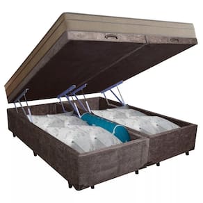 Cama Box Baú Casal Bipartido Suede + Colchão De Molas Ensacadas Portobel Ipanema 138x188x66cm Marrom