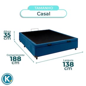 Cama Box Bau Casal Blindado Nature Azul 138x188 Base baú viuvo com 42cm de altura e amplo espaço interno para organização Revestimento em Veludo , fácil de limpar e com visual moderno