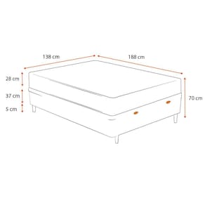 Especificações Técnicas Baú: - Marca: Lucas Colchões; - Material: Madeira tratada; - Peso máximo recomendado: até 150 Kg (por pessoa); - Altura do baú: 37cm; - Profundidade do baú: 25cm; - Altura dos pés: 5cm; - Revestimento: tecido sintético; - Garantia: 6 meses de garantia; - Dimensões do produto (largura x comprimento x altura) Casal: 138x188x42cm