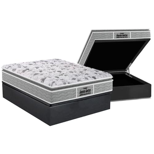 Abaixo segue os produtos do KIT: Cama Box Baú Casal: Colchão Anatômico Probel D45 / EP Guarda Costas PróExtreme Plus Pillow Top + Base CRC Suede Gray(138x188)