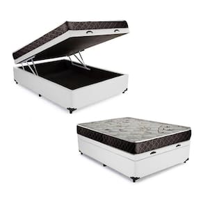 Cama Box Baú Casal Colchão Anny Espuma D23 Acolchões + Box Sintético 53x138x188 - Branco