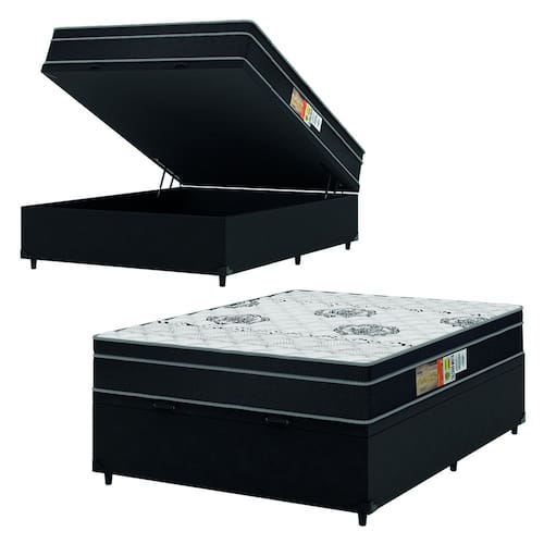 MODELO: Cama Box Baú Casal Colchão Espuma Orthoface Polar 138x188x66cm Suporta Até 120kg Por Pessoa