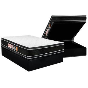 Conjunto Box Baú Casal: Colchão Espuma Castor D33 Black e White Air Double Face Euro Pillow + Base CRC Suede Black(138x188)
