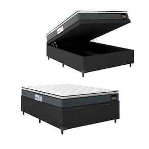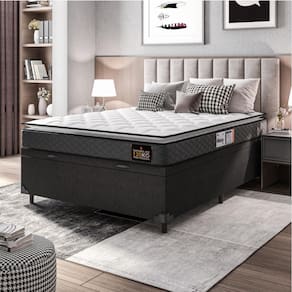 Cama Box Baú Casal Colchão Espuma D33 Pillow Top Millenium 138x188x60cm Cinza/Preto Hellen - Suporta até 120kg por Pessoa
