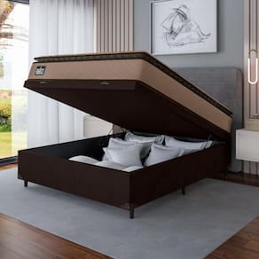 MODELO: Cama Box Baú Casal Van Gogh MARCA: Hellen COR: Marrom REVESTIMENTO TECIDO SUPERIOR COLCHÃO: Tecido Malha Bege/Marrom Estampado Floral Bordado REVESTIMENTO TECIDO LATERAL COLCHÃO: Tecido Jacquard + Faixa: 100% Poliéster REVESTIMENTO INTERIOR COLCHÃO: Espuma D33 aliada com EPS que faz com que o colchão suporte até 120kg por pessoa ESPUMA: D33 PILLOW/EURO: Pillow Top TECIDO BOX: Suede Veludo PÉS: 6 ALTURA DOS PÉS: 6cm PESO SUPORTADO: 120kg por pessoa PESO: 69kg ITENS INCLUSOS: 1 Colchão de 1,38m e 1 box baú de 1,38m INSTRUÇÕES / CUIDADOS: Utilizar em local seco com passagem de ar, não dobrar, fazer giro quinzenalmente no sentido pés/cabeceira. GARANTIA COLCHÃO: 12 Meses pelo Fabricante GARANTIA BOX: 3 meses pelo fabricante
