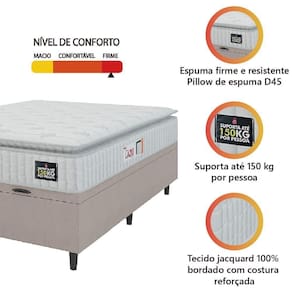REVESTIMENTO INTERIOR: Espuma D45 aliada com EPS, que permitem que o colchão suporte até 150 kg por pessoa, oferecendo conforto e estabilidade durante o sono