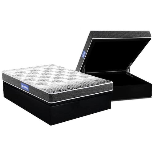 Conjunto Box Baú Casal: Colchão Espuma Probel D20 Guarda Costas Resistente Black + Base CRC Suede Black(138x188)
