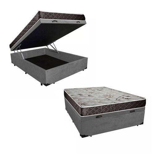 Cama Box Baú Casal Colchão Gold Espuma D33 Acolchões + Box Suede 57x138x188 - Cinza