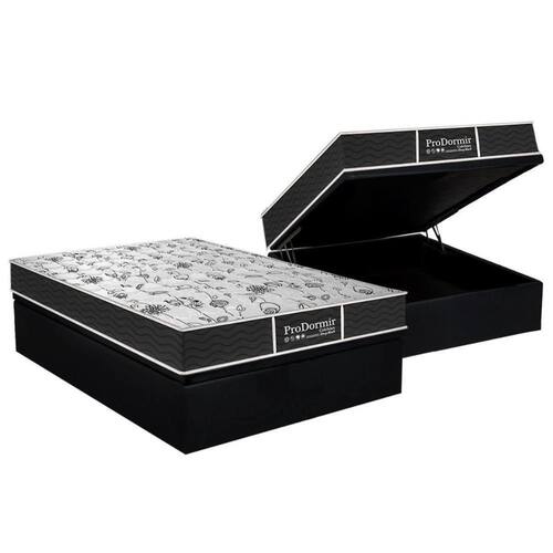 Cama Box Baú Casal: Colchão Molas Bonnel Probel Prolastic Prodormir Sleep + Base Crc Courano Black(138x188)