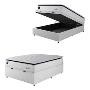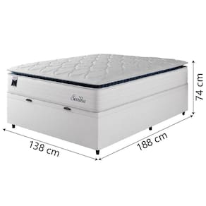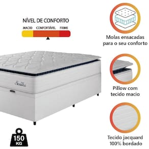 MODELO: Cama Box Baú Casal Colchão Molas Ensacadas Com Pillow Sevilha 138x188x74cm Suporta Até 150 Kg Por Pessoa