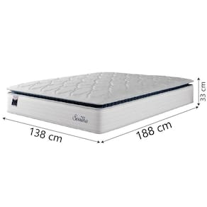 MEDIDAS DO COLCHÃO:: A = 33 cm L = 138 cm P = 188 cm | MEDIDAS DO BOX:: A = 41 cm / 35 cm (sem pés) L = 138 cm P = 188 cm | ALTURA DOS PÉS:: 6 cm | PESO:: 81,35 kg | PESO SUPORTADO:: 150 kg por pessoa | MODELO:: Cama Box Baú Casal Colchão Molas Ensacadas Com Pillow Sevilha 138x188x74cm Suporta Até 150 Kg Por Pessoa | MARCA BOX:: Prince | PISTÃO:: A gás | REVESTIMENTO SUPERIOR:: Tecido Jacquard branco e Espuma D20 (Matelassê) | REVESTIMENTO LATERAL:: Tecido Jacquard branco e Espuma D20 (Matelassê) | MARCA COLCHÃO:: Hellen | COR:: Branco/Cinza | REVESTIMENTO INTERNO:: Molas ensacadas aliada com espuma D28, permitindo que o colchão suporte até 150 kg por pessoa | MOLEJO:: Molas Ensacadas | POSSUI EPS:: Não | TECIDO BOX:: Linho | MATERIAL DA ESTRUTURA DO BOX:: Madeira de reflorestamento | PÉS:: 6 | MATERIAL DOS PÉS:: PVC | ITENS INCLUSOS:: 1 Colchão de 1,38m e 1 box baú de 1,38m | INSTRUÇÕES / CUIDADOS:: Utilizar em local seco com passagem de ar, não dobrar, fazer giro quinzenalmente no sentido pés/cabeceira | AVISO:: A Esplanada Móveis se responsabiliza pela dos produtos adquiridos até a porta de entrada ou portaria do endereço indicado, se a portaria do condomínio permitir, as s são efetuadas no piso térreo e é de responsabilidade do cliente. | PILLOW:: Sim, oferecendo mais sensação de conforto | GARANTIA COLCHÃO:: 12 Meses | GARANTIA BOX:: 3 Meses | TAMANHO DA CAMA: CASAL | TIPO DE CAMA: BOX