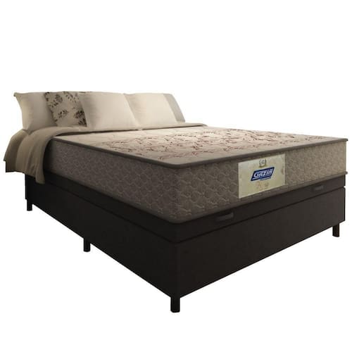 MODELO: Cama Box Baú Casal Colchão Molas Flora 138x188x63cm Suporta Até 110 Kg Por Pessoa