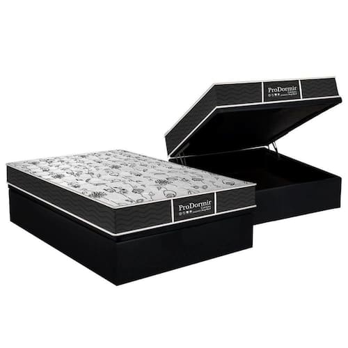 Cama Box Baú Casal: Colchão Molas Probel Prolastic Prodormir Sleep + Base Crc Courano Black(138x188)