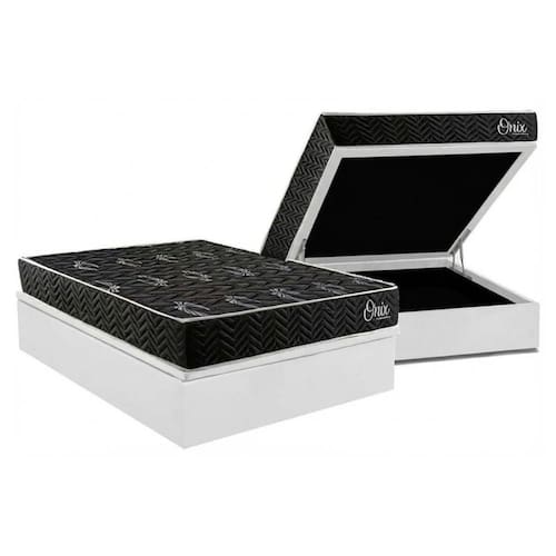Cama Box Baú Casal + Colchão Anatômico Kappesberg D28 Onix + Base CRC Corano White