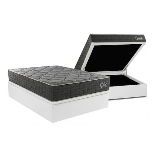 Cama Box Baú Casal + Colchão Anatômico Kappesberg D40 Grise + Base CRC Corano White