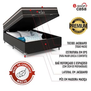 Cama Box Casal com Baú + Colchão Paris Molas Ensacadas - e-Shop Casa