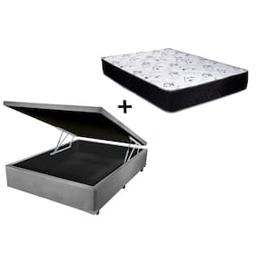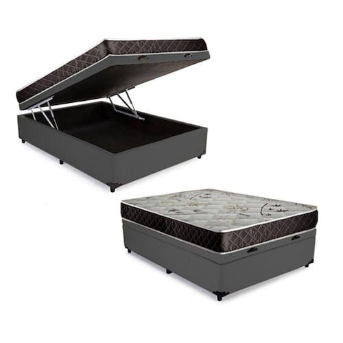 Cama Box Baú Casal Conforto Sintético Cinza + Colchão Casal Conforto Espuma D33 Com EPS 16x138x188