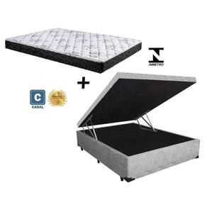 Cama Box Baú Casal Conforto Suede Cinza + Colchão Casal Conforto Espuma D23 Com EPS 24x138x188