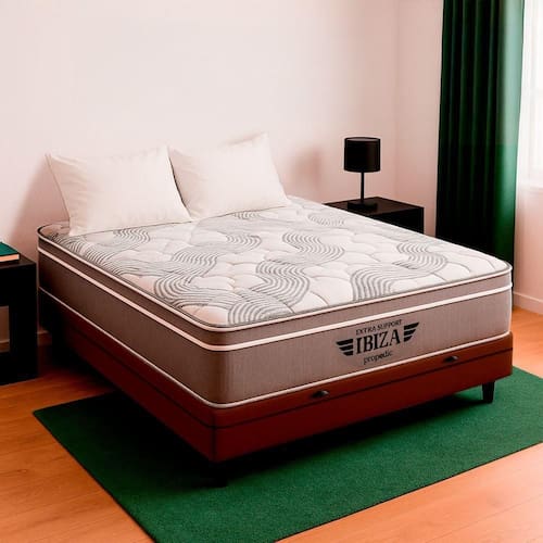 O colchão Ibiza combina Molas Ensacadas, espuma de alta performance e sistema EPS, oferecendo suporte, conforto térmico e design moderno para noites revigorantes. Já a Base Box Baú Bravus une funcionalidade e elegância, com estrutura resistente, revestimento em tecido sintético e amplo espaço para armazenamento, ideal para otimizar o quarto com estilo..