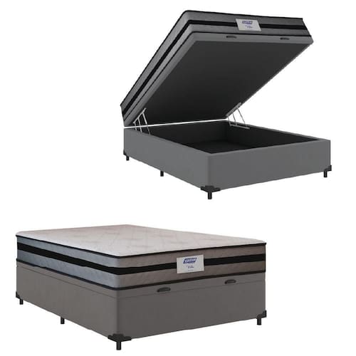 Cama Box Baú Casal Gazin Colchão Com Molas Ensacadas Vibe 138x188x63cm Cinza/preto