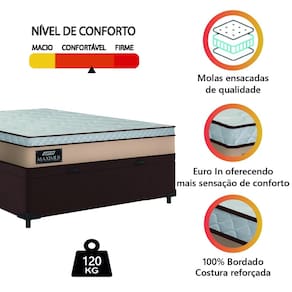 MODELO: Cama Box Baú Casal Colchão Maximus Molas Ensacadas 138x188x65cm