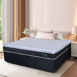 MODELO: Cama Box Baú Casal King Colchão Com Molas Ensacadas City Pillow Top 193x203x64cm