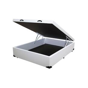 Cama Box Baú Casal King Design Sintético Branco 138x188x41
