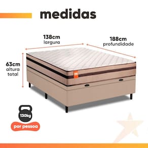 Itens Inclusos: 1 Colchão Casal (138x188cm) e 1 Box Baú (138x188cm)