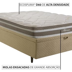 Madeira Eucalipto de Reflorestamento, Madeira Compensada, Poliuretano, Poliéster, ViscoseCama Box Baú Casal Herval Hórus, 74x138x188 cm, Molas Ensacadas