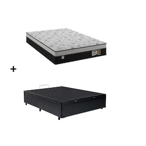 Cama Box Baú Casal Corino Preto + Colchão Concept Dream Molas Ensacadas 138x188x22 - Plumatex