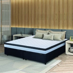 Cama Box Dunas, conforto que se adapta ao seu corpo! Ideal para quem valoriza qualidade no descanso, o Dunas é feito com molas ensacadas de qualidade e Euro Pillow, oferecendo suporte suave e agradável para noites realmente revigorantes, perfeito para quem quer cuidar da saúde. Com acabamento moderno e durável, ele traz sofisticação ao ambiente e proporciona uma sensação de aconchego incomparável. Mais que uma cama, o Dunas representa conforto inteligente: com ótima sustentação e resistência para o dia a dia. O box conta com acabamento em tecido reforçado, possui baú e um sistema de abertura fácil, onde você terá mais espaço para poder guardar os seus objetos pessoais, roupas, travesseiros, edredons. Confeccionado com materiais de qualidade garantindo maior durabilidade e resistência.