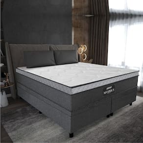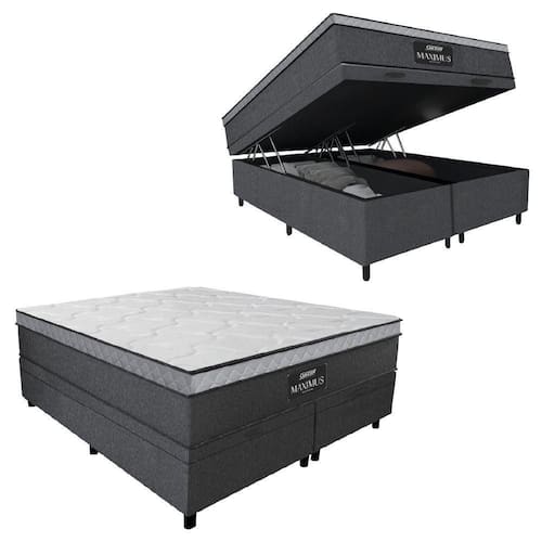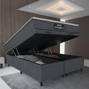 Cama Box Baú Casal Queen Colchão Gazin Maximus Molas Ensacadas 158x198x65cm Linho Grafite/preto