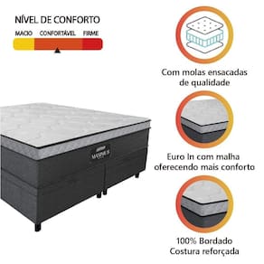 Você merece o melhor quando se trata do seu sono e bem-estar, e por isso a Cama Box Baú Casal Queen Maximus se torna a escolha perfeita para o seu quarto! Colchão com molas ensacadas individualmente que trabalham em conjunto para garantir conforto e durabilidade, pois desta forma independente, o movimento de uma pessoa não interfere no conforto da outra. Seu tampo é confeccionado em malha bordado matelassê e fibra siliconada que permite melhor ventilação, e e ainda conta com uma camada de euro in proporcionando ainda mais conforto.