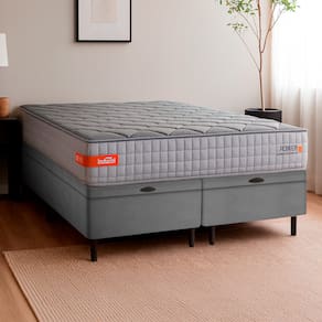 ITENS INCLUSOS: 1 Colchão Queen (158cm), 2 Box Baú (79cm)