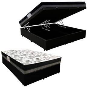 Cama Box Baú Casal Sintético Bipartido + Colchão Ortobom ISO Dupla Face 138x188x60 - Preto