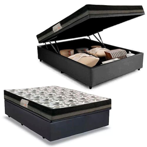 Cama Box Baú Casal Sintético Bipartido + Colchão Ortobom ISO Dupla Face 60x138x188